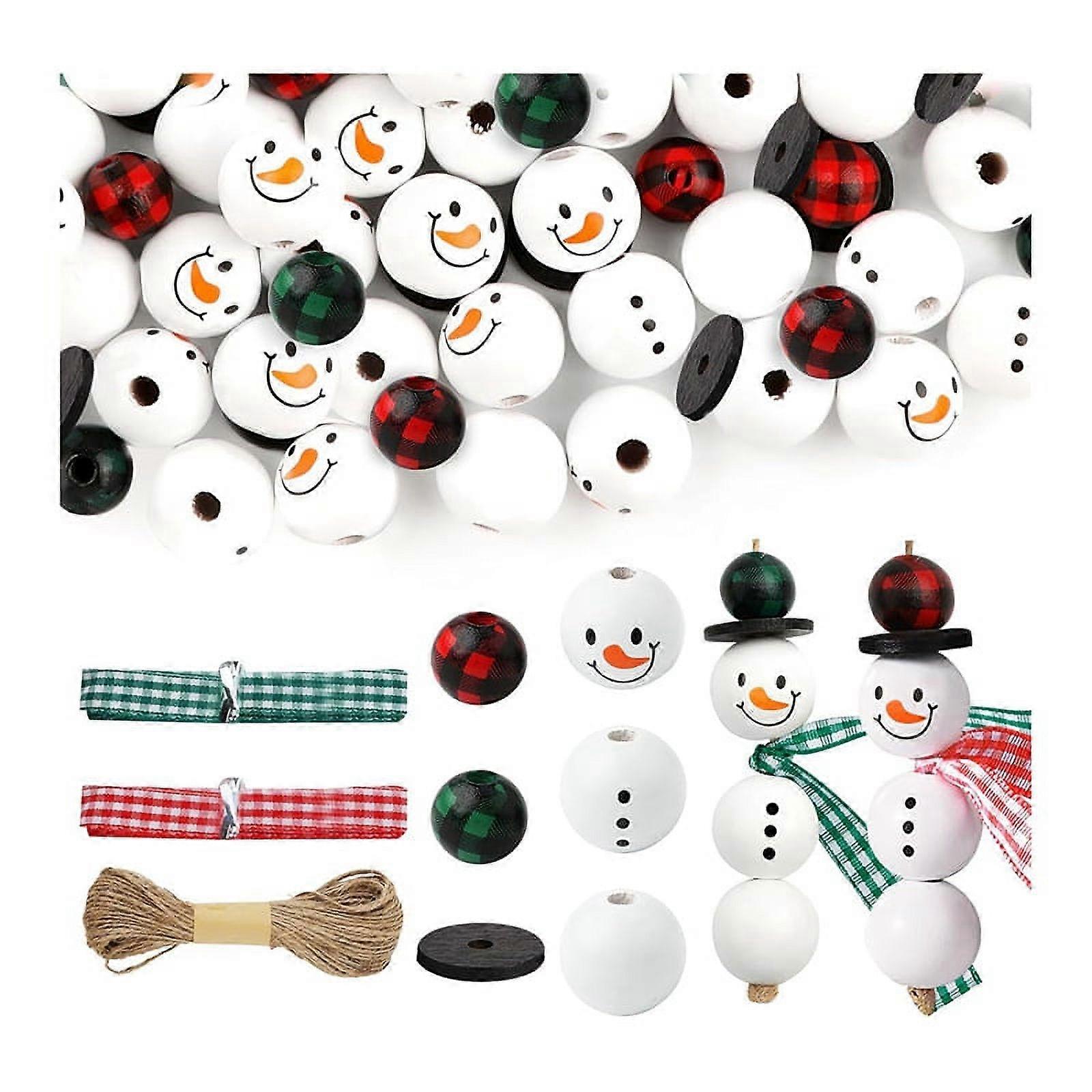 IMCBSTT 150Pcs Wood Beads 16mm 20mm Christmas Print Wood Beads Wood Beads for Decor DIY Craft Supplies