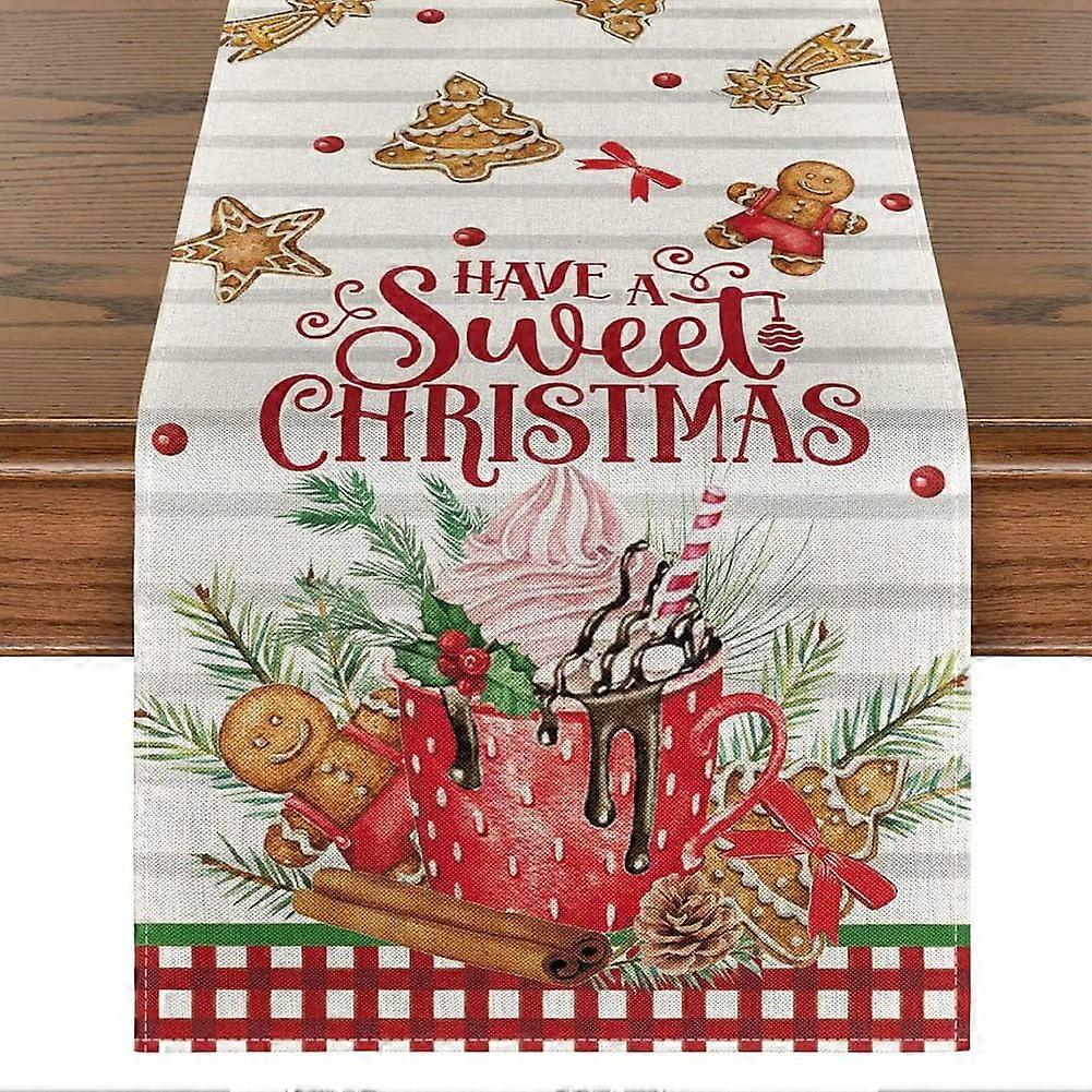 Merry Christmas Table Runner, Christmas Decorations for Kitchen Dining Coffee or Indoor and Outdoor Home Parties Decor