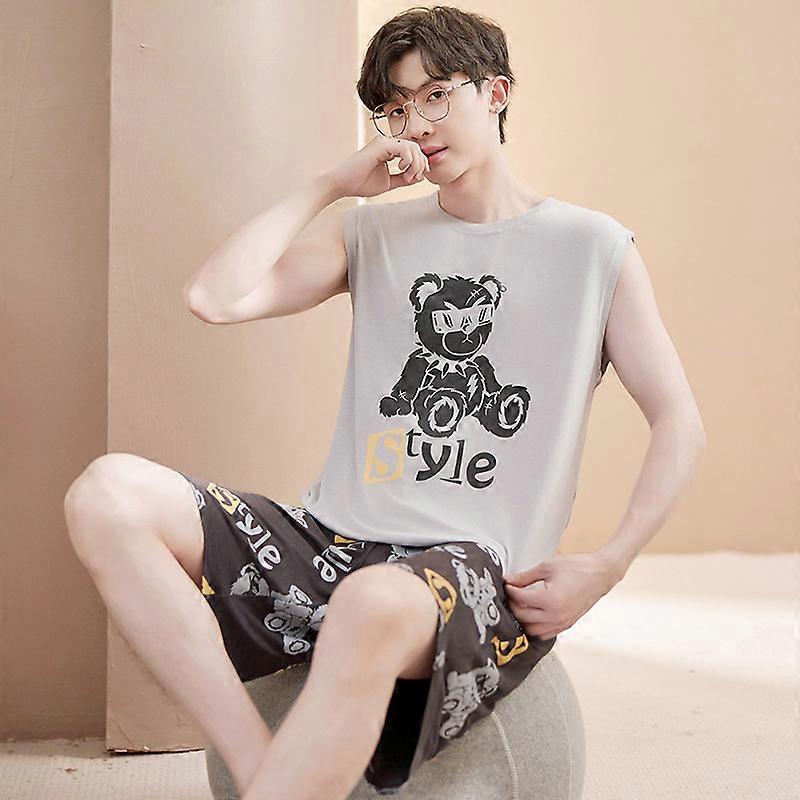 Modal pajamas men's summer vest sleeveless thin ice silk 2024 new youth home clothes summer style