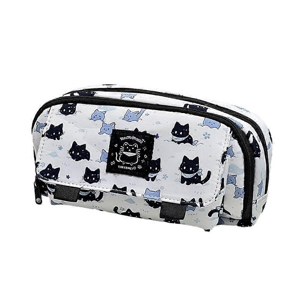 Portable Canvas Pen Bag Cute Cat Flip Cover Stationery Bag Retro Puppy Large Capacity Pencil Case Student