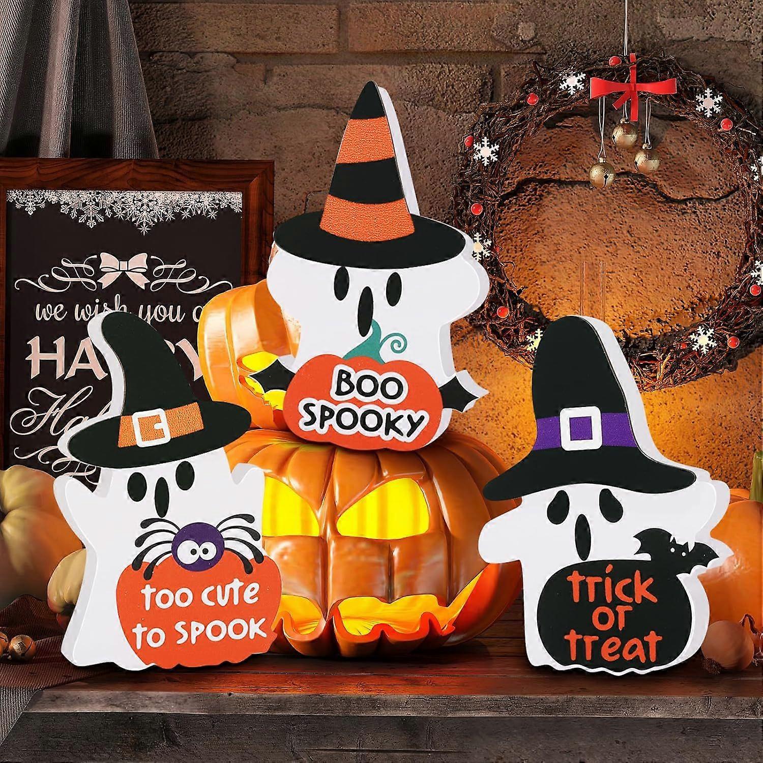 Pieces Ghost Wooden Tiered Tray Decorative Tabletop Sign Ghost Decorations for Party Home Shelf Display