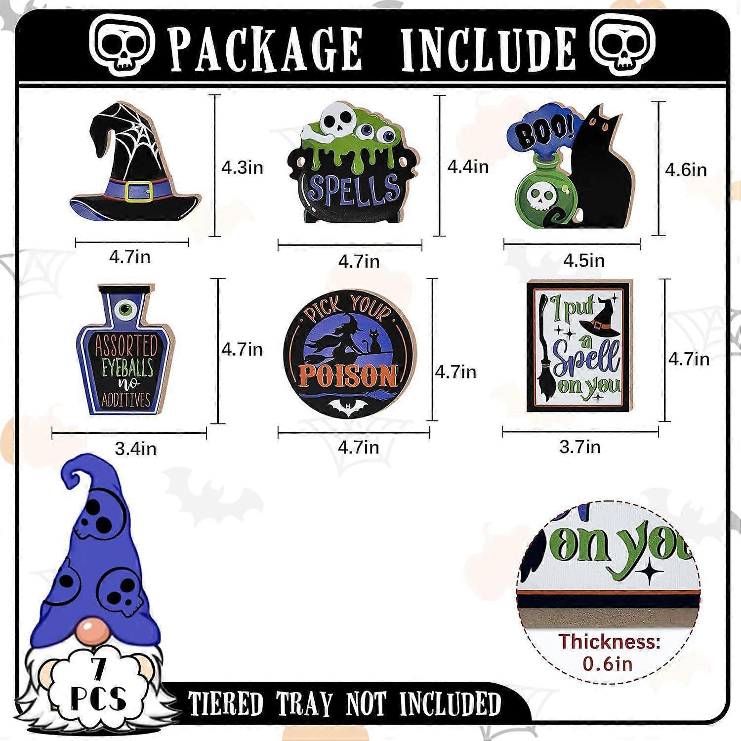 7-Piece Halloween Witch Tiered Tray Decoration Fun Black Cat Cauldron Spell Farmhouse Wood Decor Set