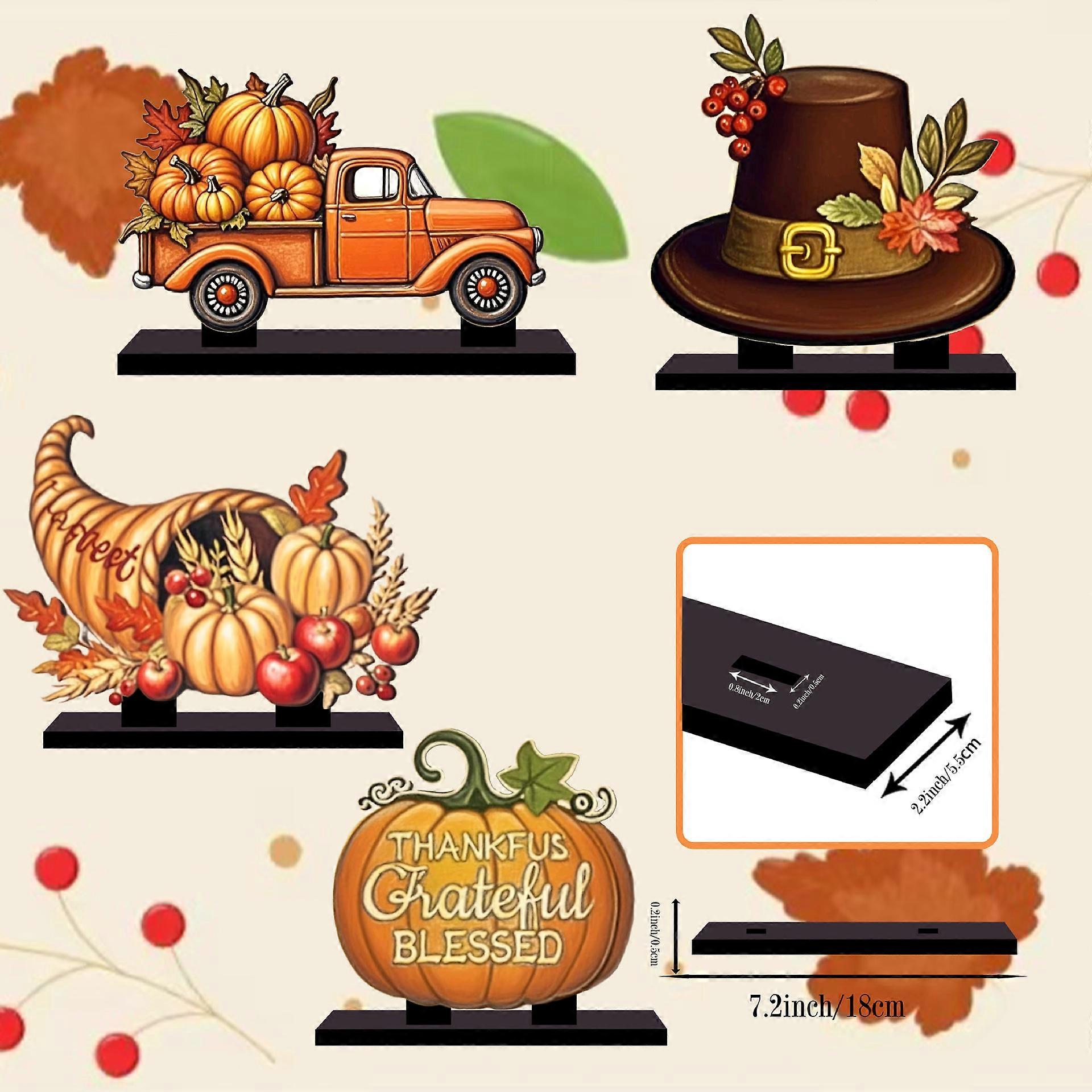 4-piece Thanksgiving wooden ornaments, pumpkins, hats, etc. can be decorated on the table