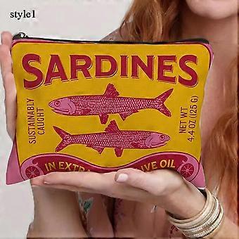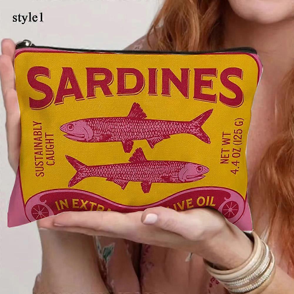 Vintage Sardines Pattern Makeup Bag With Zipper Lightweight Travel Cosmetic Organizer For Women Durable Storage Bag Change Purse