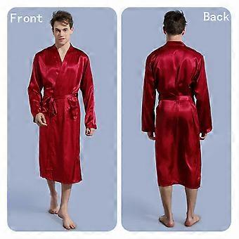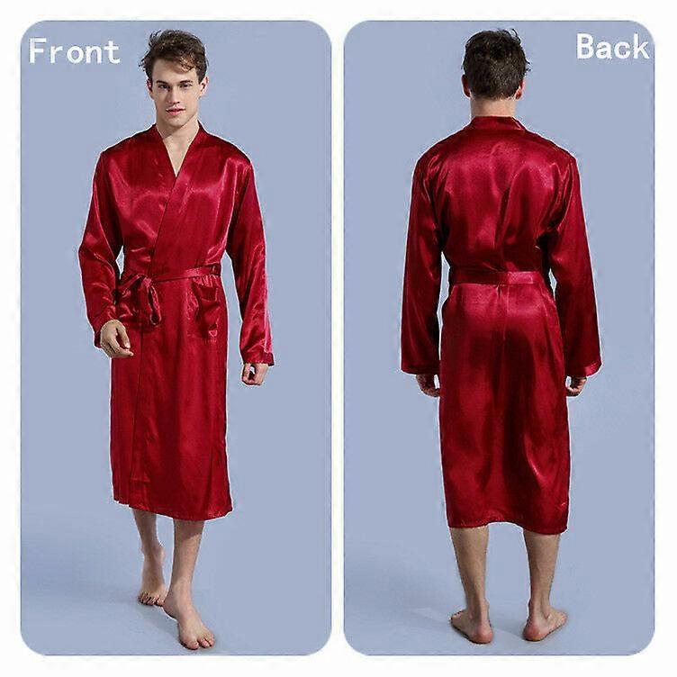 Mens Satin Silk Pajamas Kimono Bathrobe Robe Dressing Summer Gown Pjs Loungewear