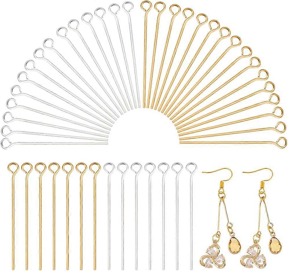 160 pcs 30mm 304 Stainless Steel Head Pins, 21 Gauge (0.7mm) Open Eye Pin for Earring, Pendant, Bracelet Jewelry DIY Craft Making, Golden/Silver