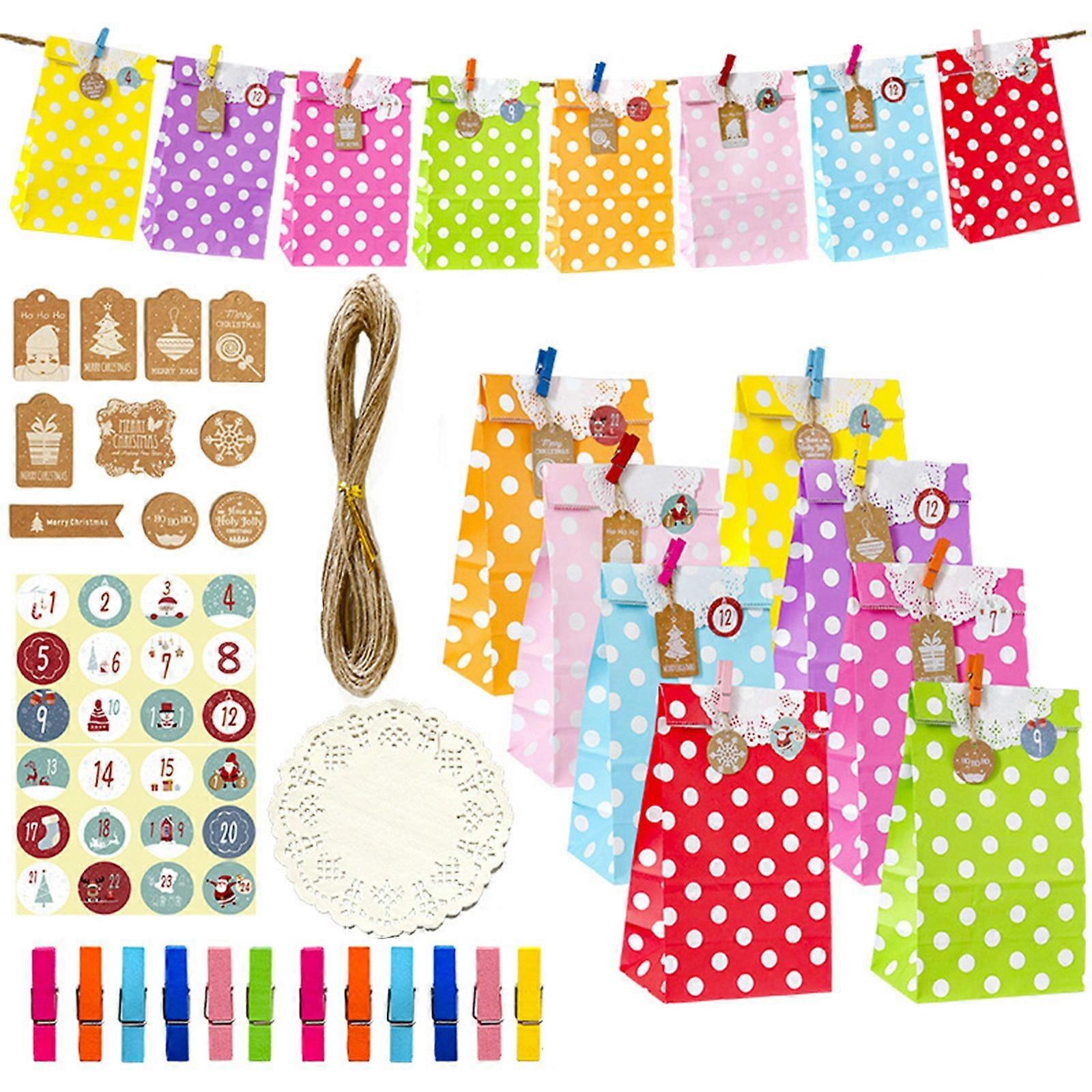 Begine Christmas Candy Paper Bag,Gift Bags Christmas 24 Pieces Kraft Paper Bags with 24 Christmas Stickers,Hangs,Pendant Decoration