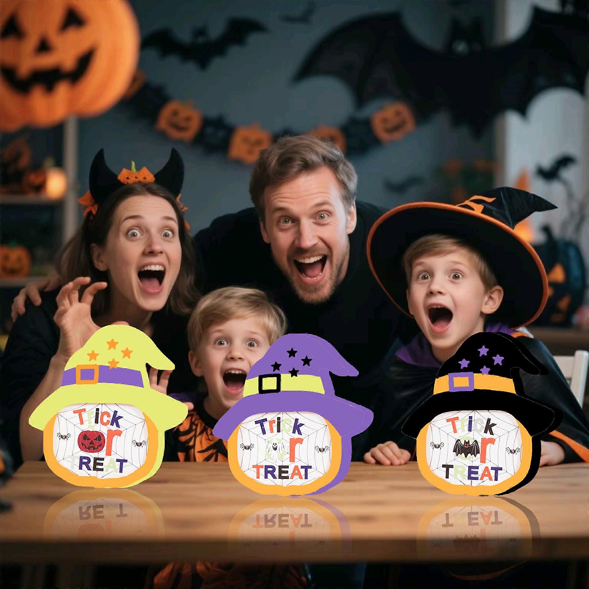 3-piece set of Halloween witch hat MDF ornaments, desktop decoration ornaments