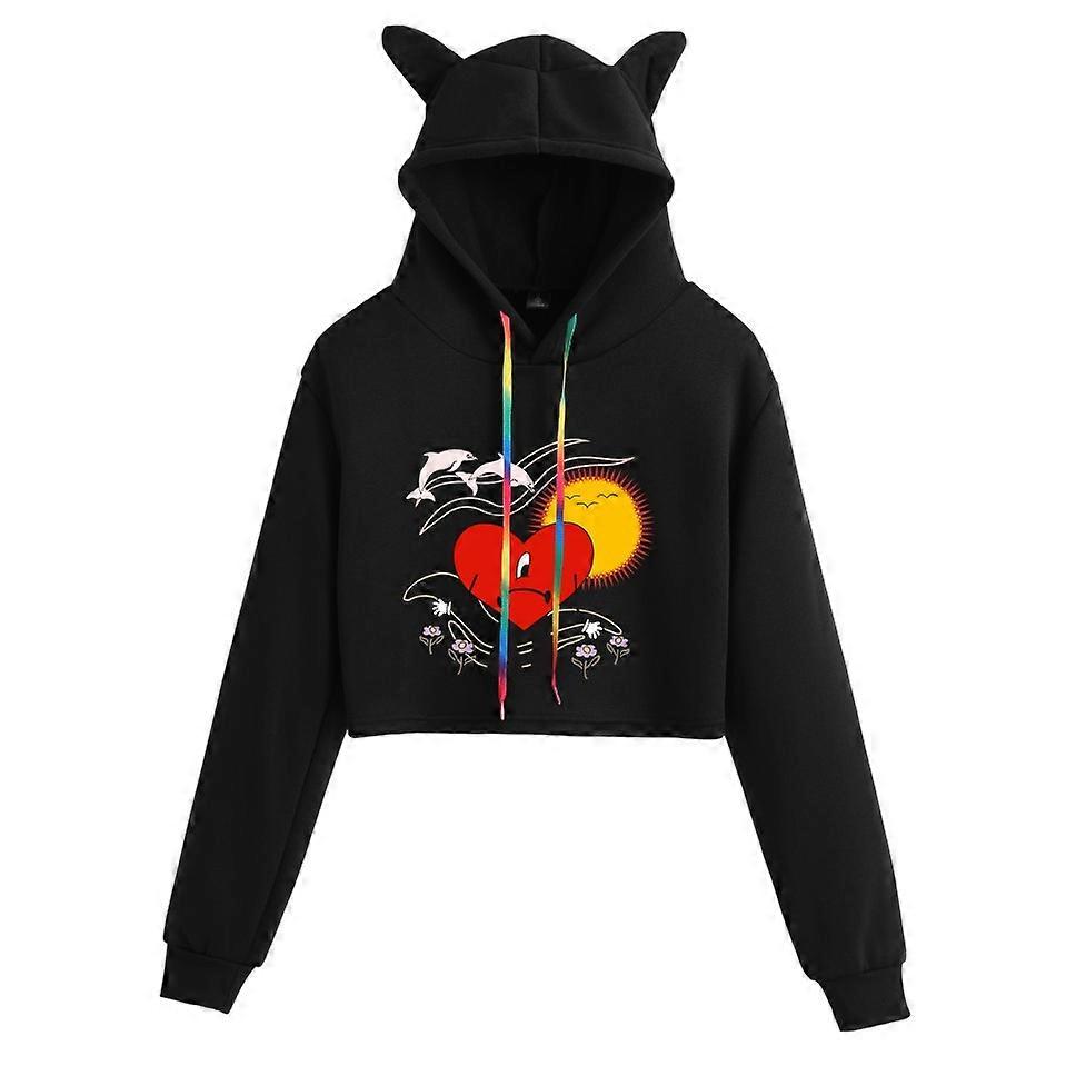 Hip-hop singer print casual belly button exposed cat flower sweatshirt autumn trend