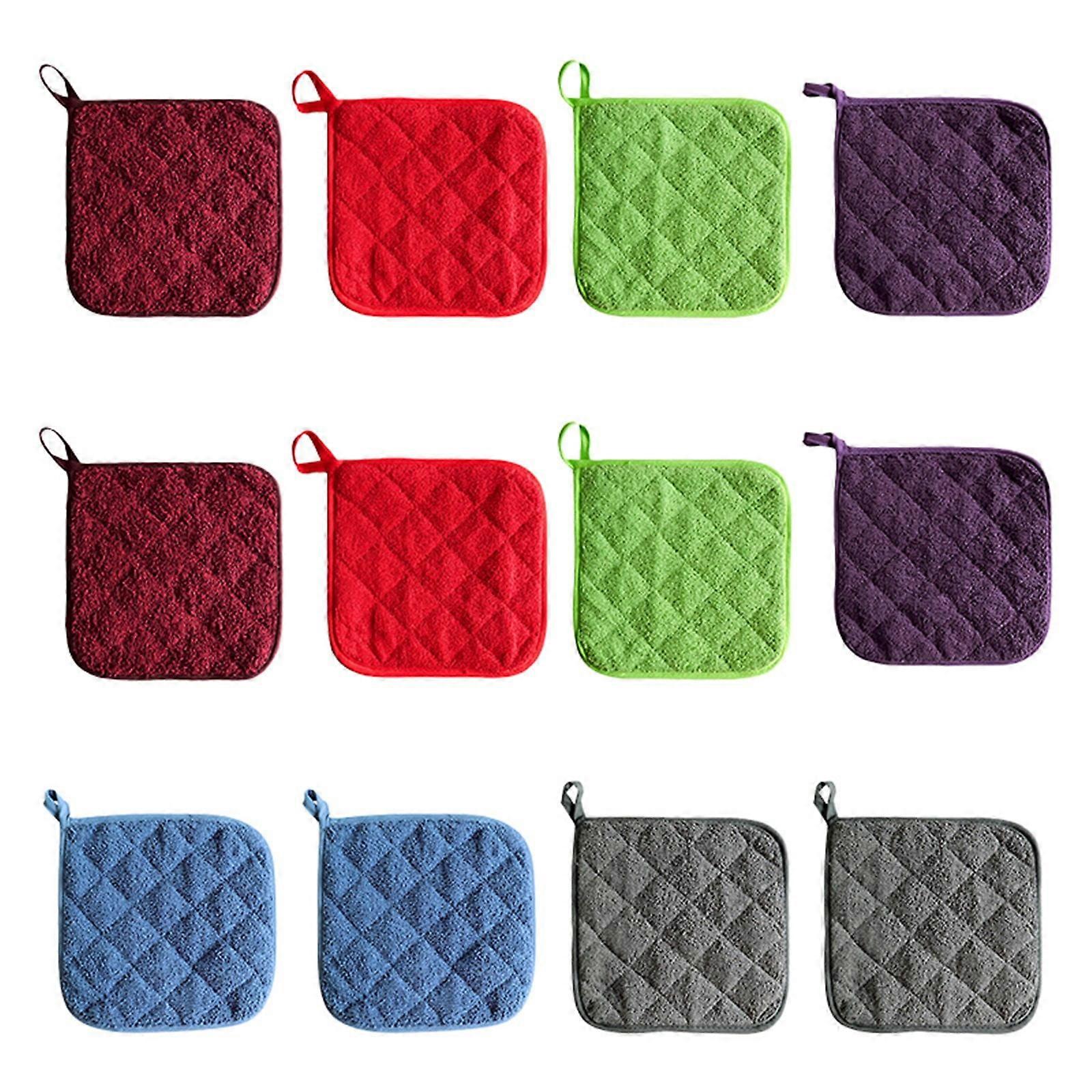 12 Pcs Terry Cloth Insulation Pads, 6 Colors (Excl. Black), Silver Coated, Oven Mitts & Baking Gloves – Compatible with standard ovens