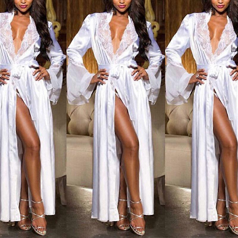 Womens Lace Silk Satin Sleepwear Long Pajamas Nightdress Lingerie Bathrobe Robe/