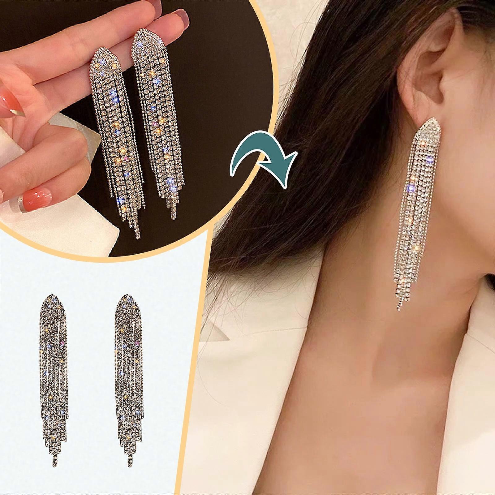 Kayannuo Christmas Clearance Ladies Fashion Full Diamond Geometric Earrings Long Tassel Drop Earrings Gifts For Women