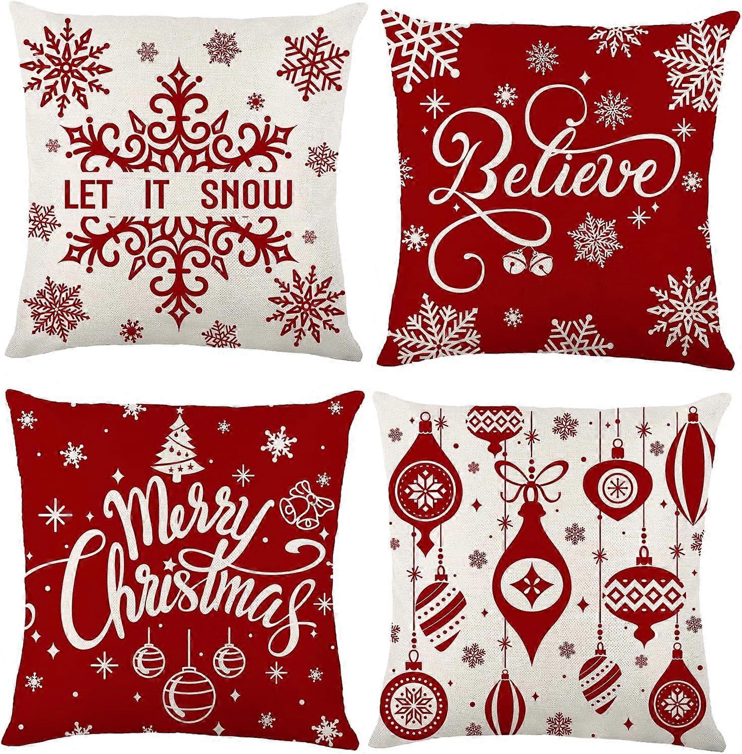 4 Pack 18x18in Christmas Pillow Covers, Buffalo Plaid Red Farmhouse Cushion Case for Couch, Home, Outdoor Decor, Compatible with Winter Festive Decor