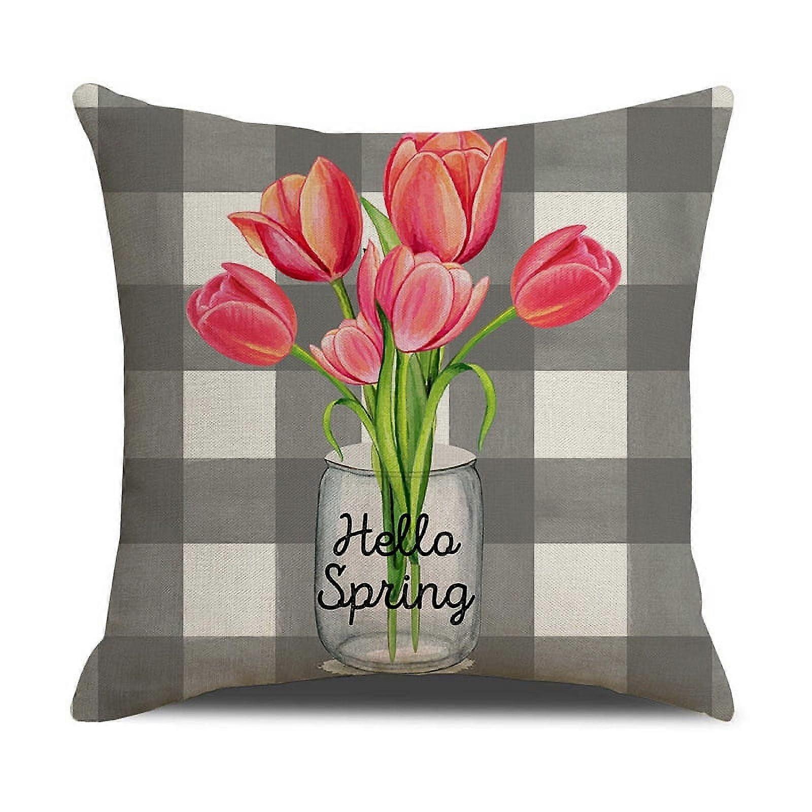 Throw Pillow Cover, Floral Bouquet Summer Nature Flowers Cotton Linen Square Cushion Case for for Sofa Couch Bedroom Car Home Decor