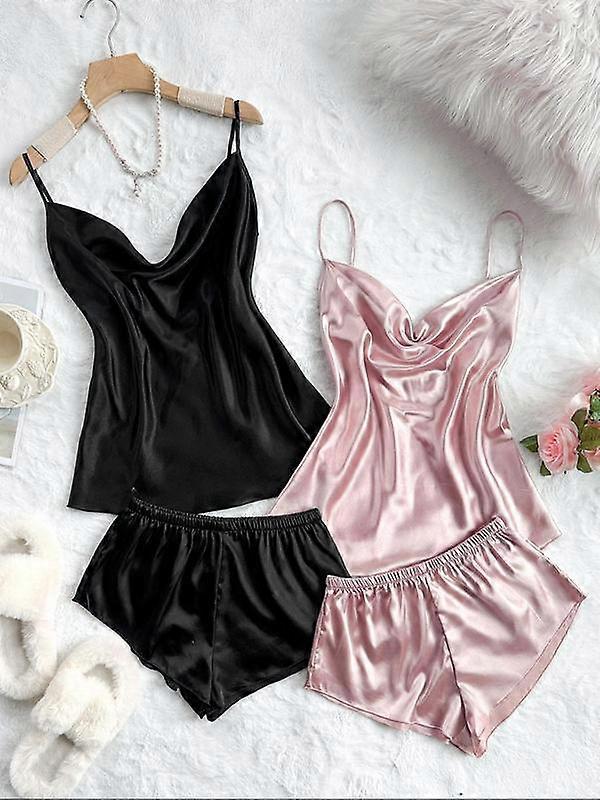 Four piece Set Women's Solid Draped Satin Pajama Set Fall
