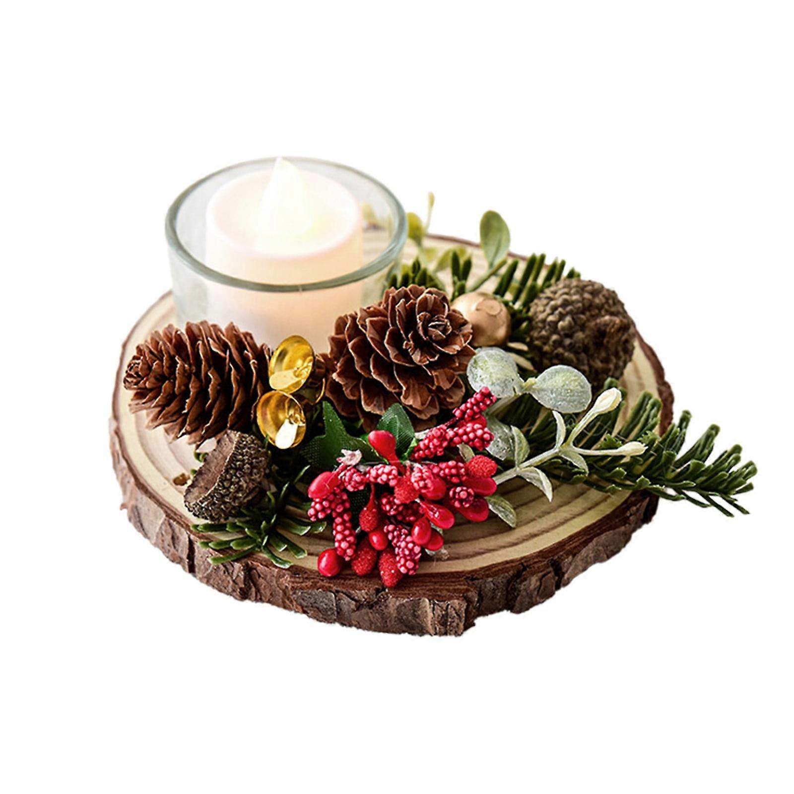 Christmas Candle Holders, Wooden Tealight Holder with Berry Ring & Pinecones, Votive Candle Decor for Wedding, Xmas Home Decor