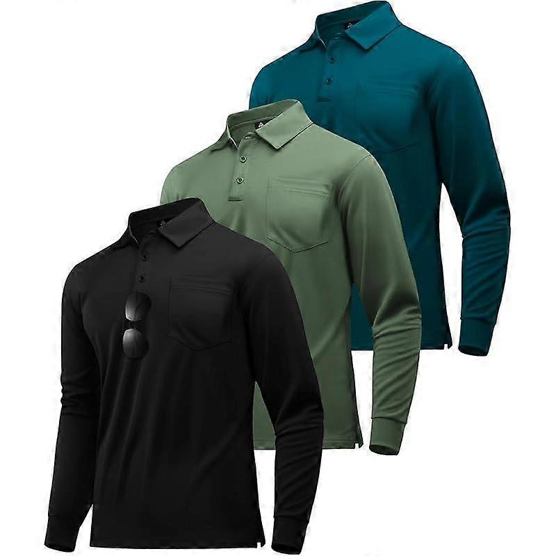 Pack Long Sleeve Polo Shirts for Men with Pocket Moisture