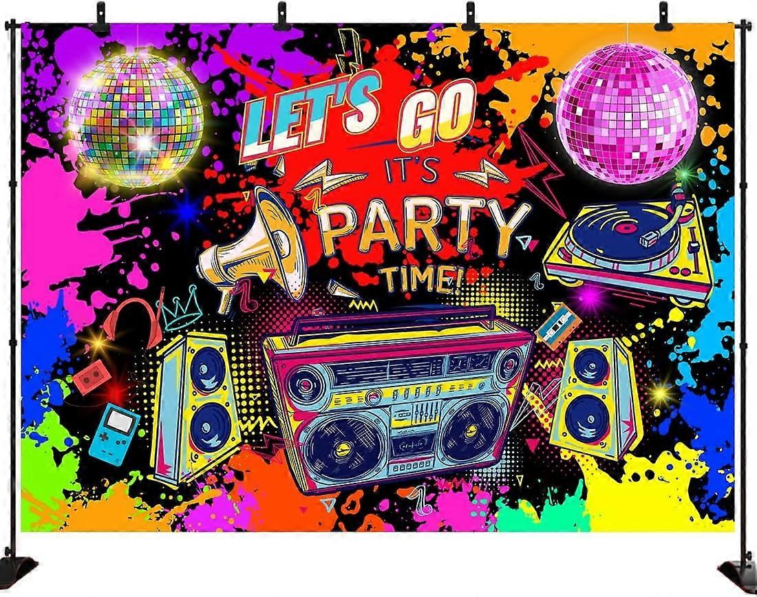 Back to 80s 90s Retro Hip Hop Rock Punk Disco Backdrop, Neon Birthday Party Banner, Photo Booth Props, 5x3ft Background Decor