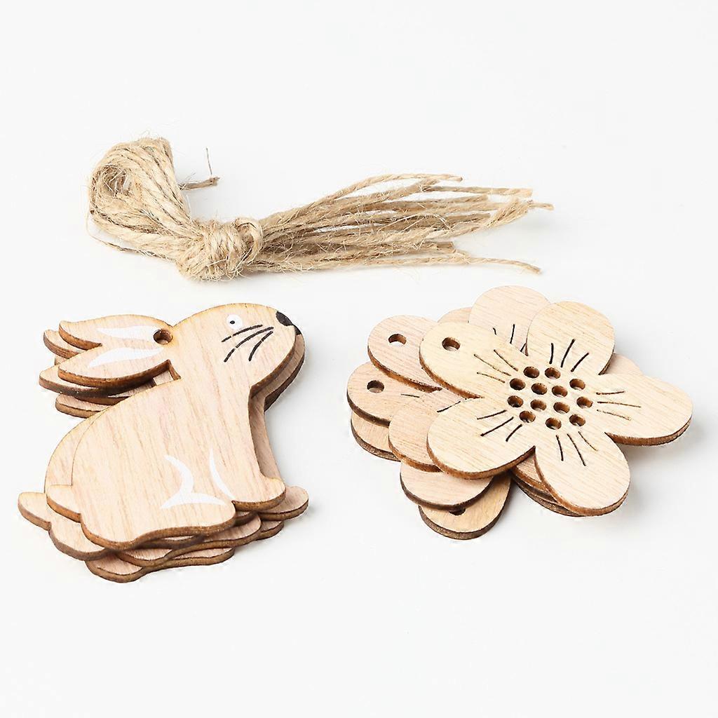2022 Easter wooden bunny original wood color flower Nordic style home decoration wooden small pendant