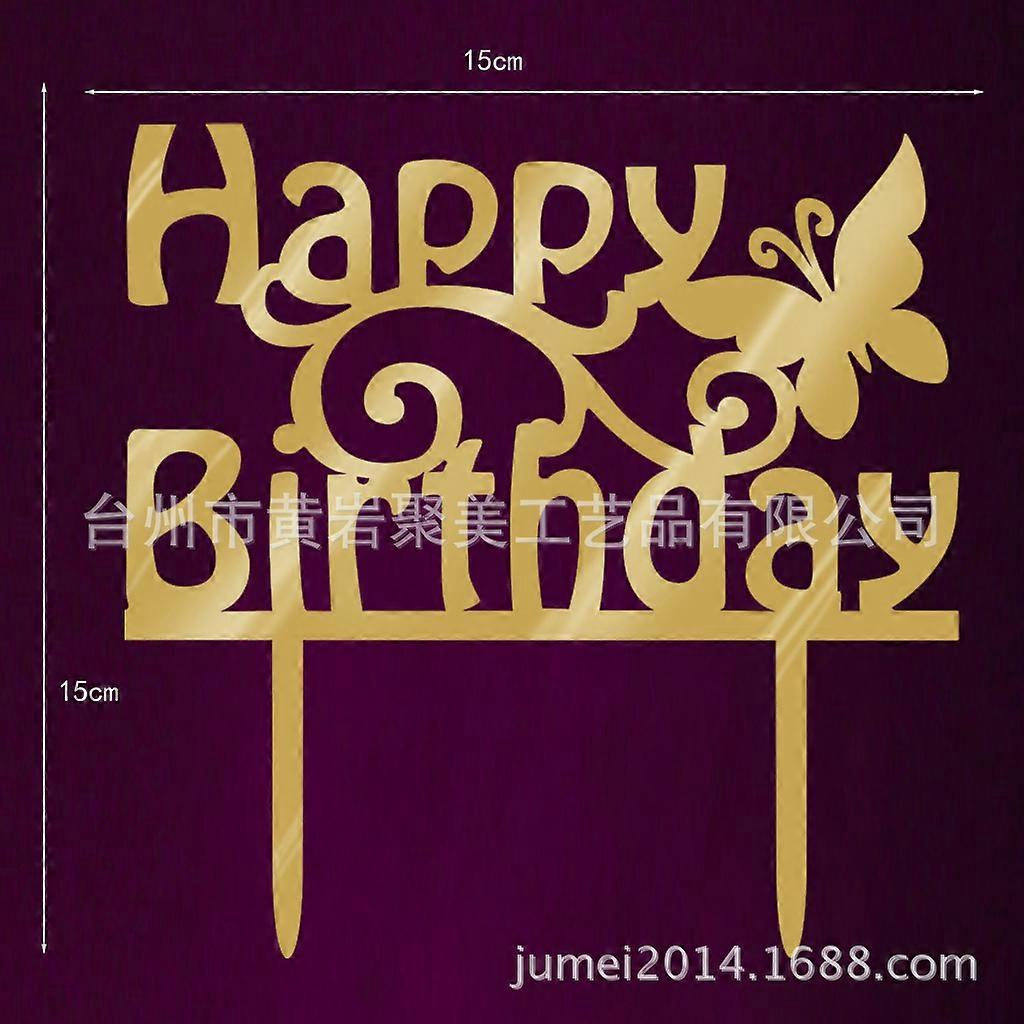 Acrylic double mirror Happy Birthday birthday cake insert wedding wedding supplies cake insert