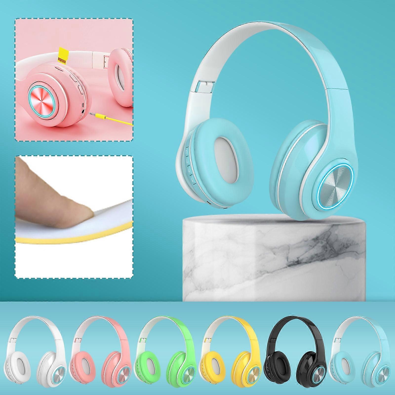 Jacenvly 2024 New Bluetooth Headphones, Wireless Foldable Headset with LED Lights, Compatible with Universal Devices, Wired Earphones Green