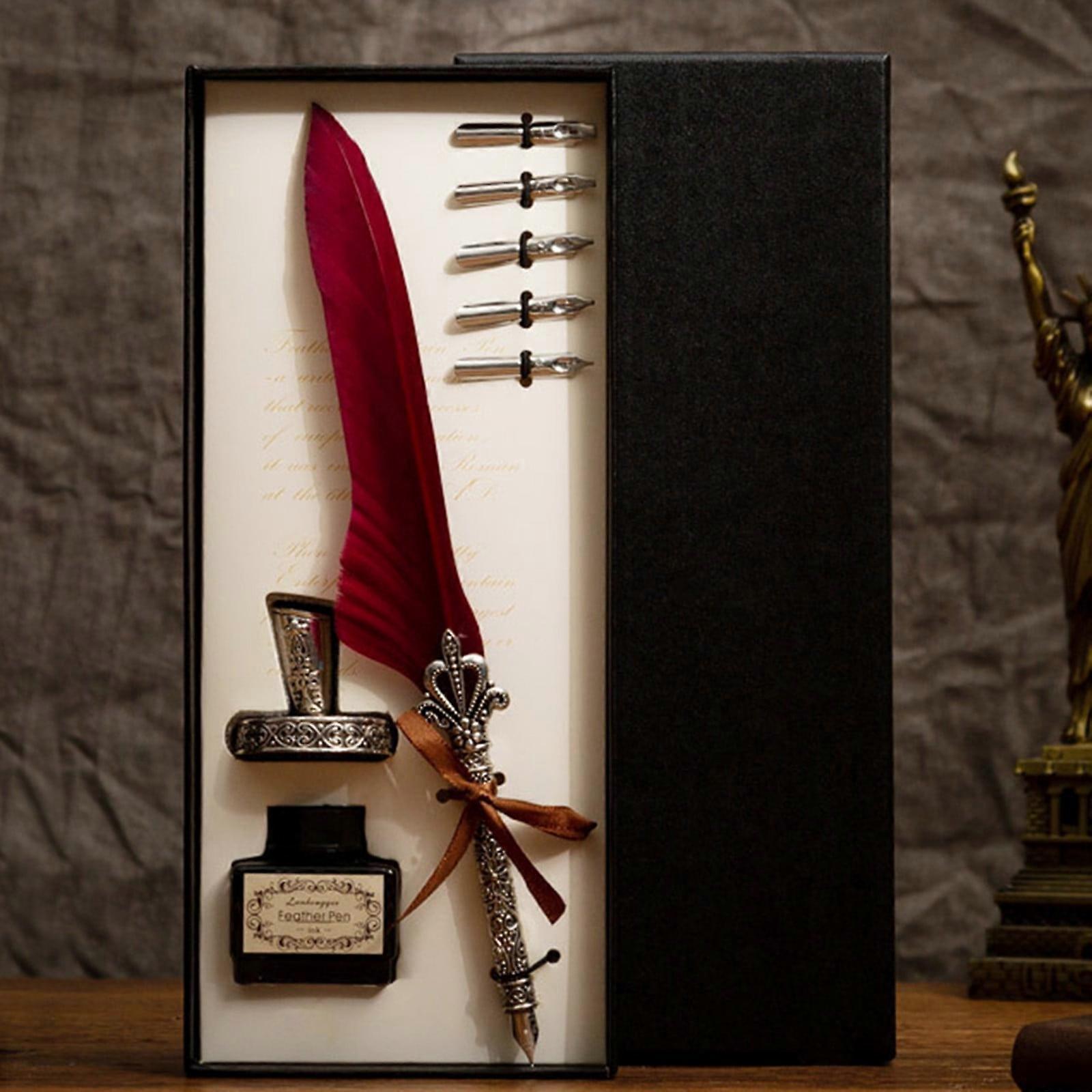 Viflosae Feather European Style Retro Pens Set 15ml, Compatible with Office Stationery Organizer, Simple Sturdy Multifunctional New Arrivals 2024