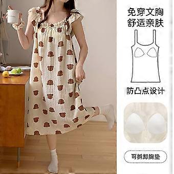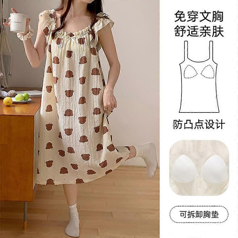 Summer nightdress for women with chest pads and small flying sleeves ins cute loose mid-length summer suspender pajamas for women