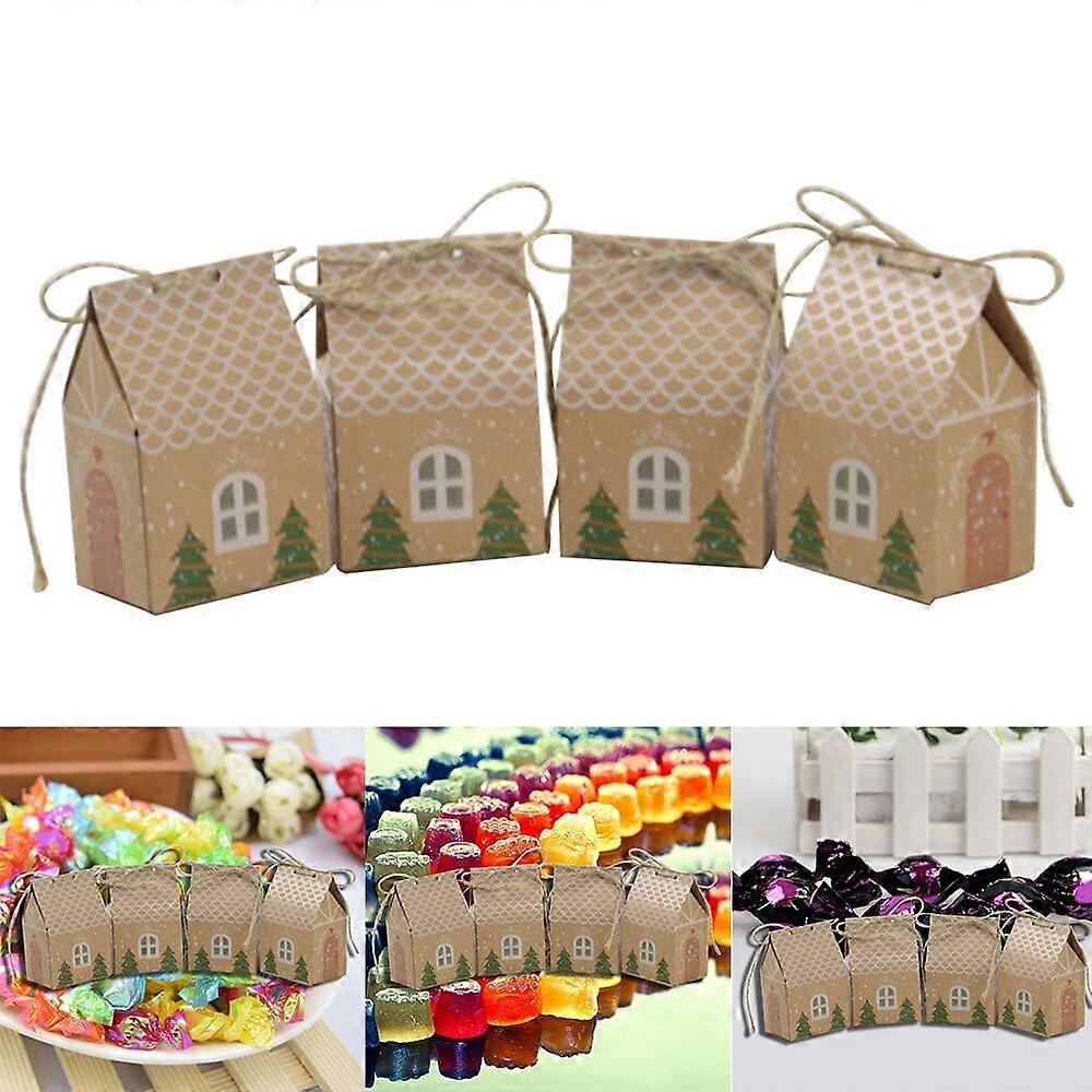 20/50 Pcs Christmas Candy Packaging House-shaped Jewelry Food Bread Bags Kraft Paper Gift Bags
