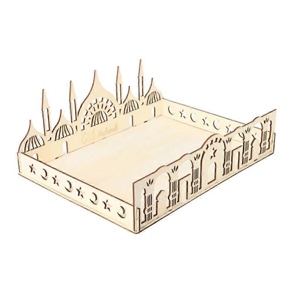 Ramadan Wood Tray with Moon & Star, Eid Mubarak Serving Tableware, Compatible with Wooden Decor, for Breakfast, Dessert, Party Decoration