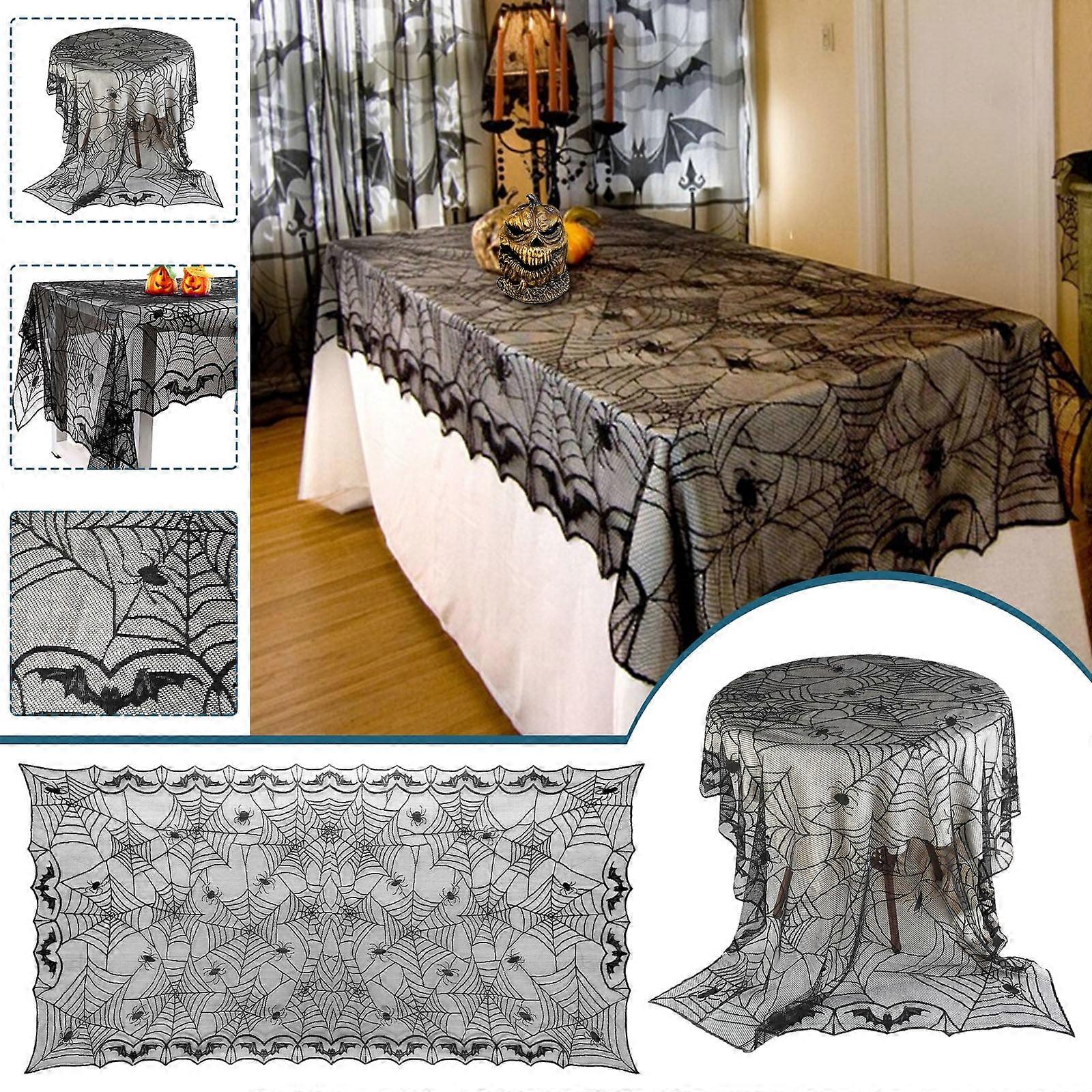 Donemore Halloween Decorations Tablecloth Runner Black Spider Cobweb Table Cover Fireplace Mantel Scarf Spiderweb Halloween Party Supplies