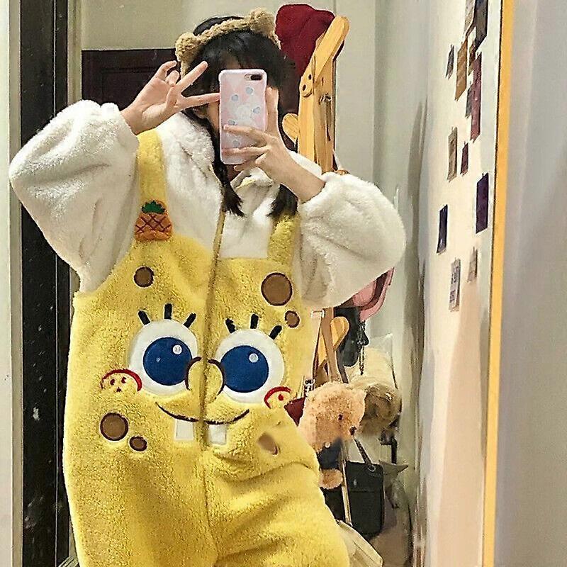 Womens Spongebob Fleece Winter Thick Pajamas Bathrobe Dressing Gown Bath Robe