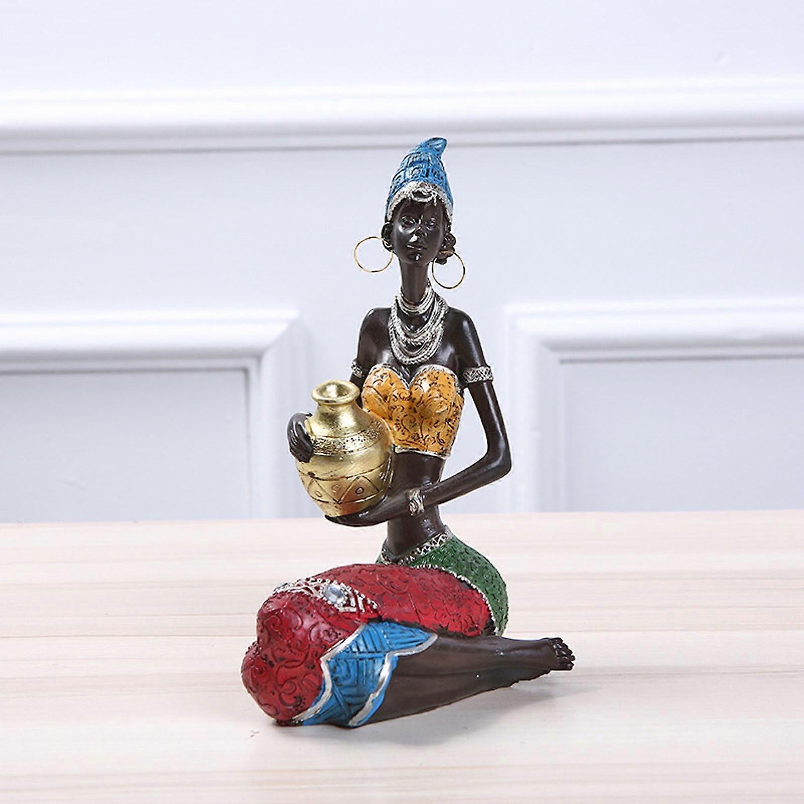 Yakbaofuo Ornaments Resin African Beauty Girl Statue Ethnic Style Home Decoration Creative Crafts Christmas Halloween Desktop Decorations