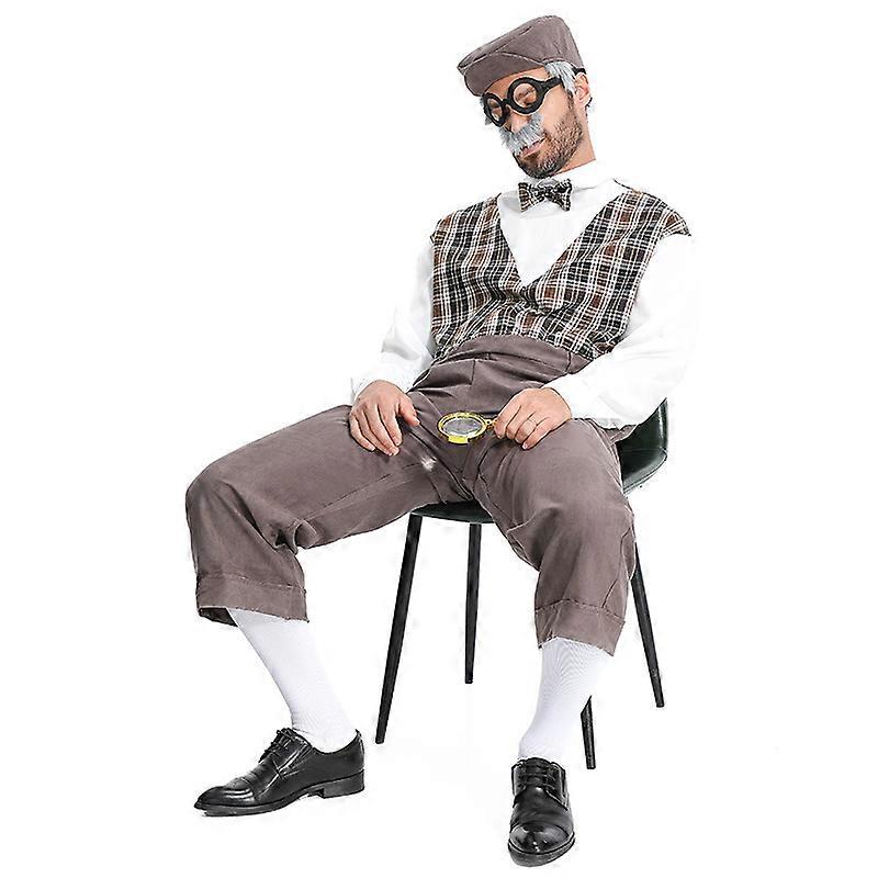 Grandpa one-piece plaid fake two-piece British style elderly gentleman suit