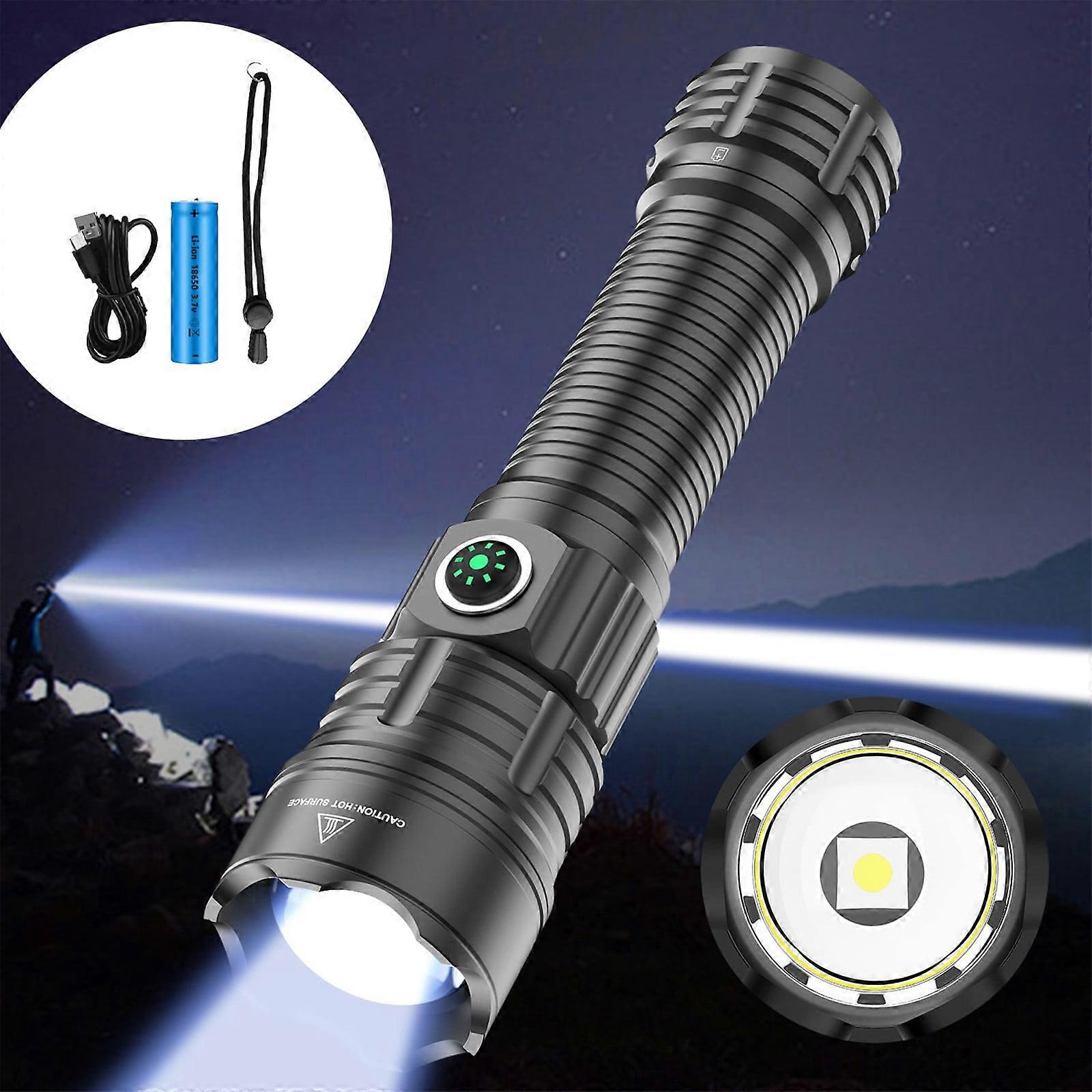 Years of Big Promotion Donemore High Lumens 30W White Strong Light LED Super Bright Tactical Flashlight with Battery, Handheld Flashlight with Type C Charging, Zoomable, Waterproof Product parameters: Product model: JF030 Color: Black Product size: 14.8 * 4 * 2.8CM/5.8 * 1.6 * 1.1IN Unfolded size: 16.3 * 4 * 2.8CM/6.4 * 1.6 * 1.1IN Packaging size: 21 * 8 * 5.5CM/8.3 * 3.1 * 2.2IN Net weight of product: 144g/0.32IB Product gross weight: 202g/0.45IB Material: Aluminum alloy Power: 30W Battery: 18650 Product description: Sophisticated Design :This camping flashlight is made of aviation-grade aluminum alloy, and the thick texture is reassuring. The diamond-shaped head structure can be used for emergency items such as window-breaking hammers; the core overlapping curve structure provides better heat dissipation; the grip overlapping curve design allows for more slip resistance. 3 Modes :This powerful flashlight with raised lens has 3 light modes such as high, low, and strobe , and its one-button design can easily cycle through the 3 modes to turn off. Note that the brightest flashlights are in highlight mode every time they turn on, so don't catch them on your glasses. IPX6 watertight :This watertight emergency flashlight can be used in severe weather such as rain, due to its excellent material and body design, watertight, non-slip, and impact not easily damaged, suitable for outdoor use, such as camping, adventure, hiking, fishing, but please do not sink this mountaineering flashlight directly in water or discard the dirt cover of the charging port, as these may directly damage the camping flashlight. Rechargeable & Power Display :This rechargeable flashlight has a built-in Type-C input port, which can be connected to power bank, computer, car charger, wall charger, etc. to conveniently charge the LED flashlight. Plus, this bright flashlight has a indicator light at the interchange to read when to charge. 2000 lumens: Super bright flashlight rechargeable flashlight with built-in intelligent LED chip, maximum output power of 30W, and maximum lighting distance of up to 500 meters (3280 feet). This LED high lighting flashlight is several times brighter than a regular flashlight, giving you the beautiful world of light you want. Package Included: 1 * Flashlight 1 * Data cable 1 * Hanging rope 1 * Instruction manual Net weight of product: 144g/0.32IB Product gross weight: 202g/0.45IB Material: Aluminum alloy Years of Big Promotion Donemore High Lumens 30W White Strong Light LED Super Bright Tactical Flashlight with Battery, Handheld Flashlight with Type C Charging, Zoomable, Waterproof Product parameters: