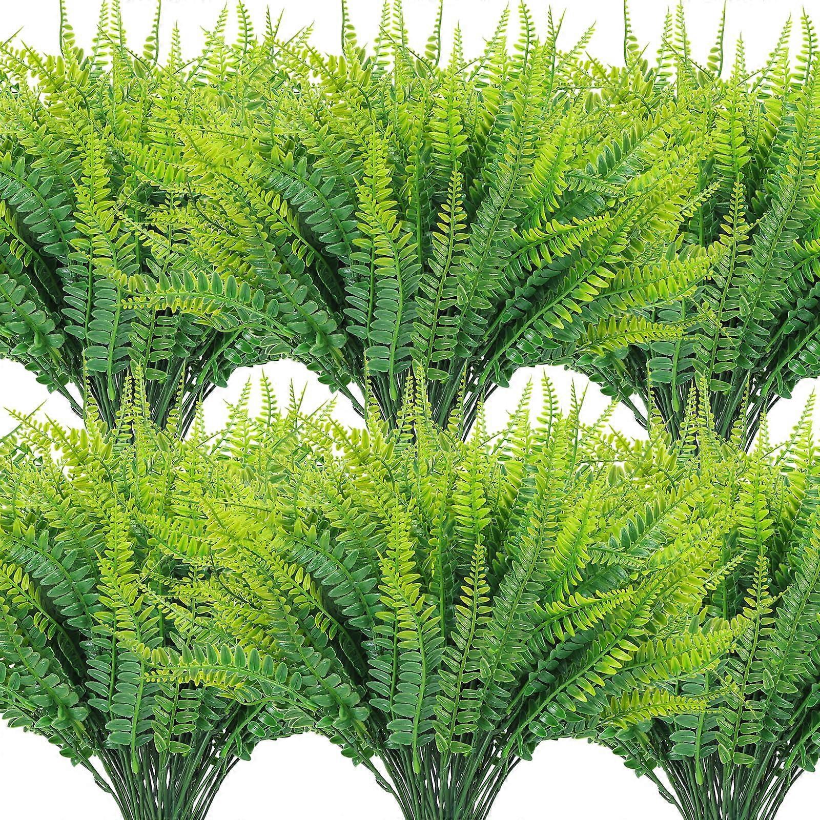 CEWOR 36 Pcs Artificial Boston Ferns, UV Resistant Greenery Plants for Indoor Outdoor, Window Box, Porch, Garden Decor