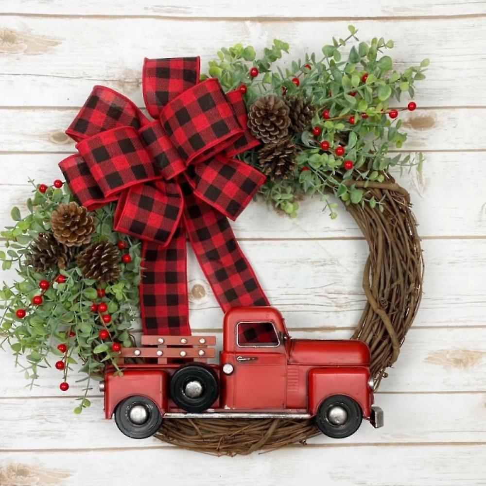 Retro Truck Christmas Wreath Rustic Christmas Garland Vintage Xmas Decor 15.7in