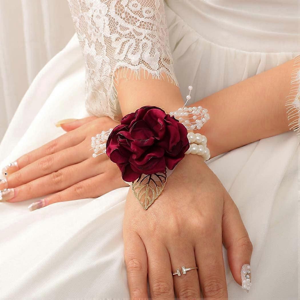 4PCS Rose Wedding Wrist Boutonniere Corsage Fake Flower Bridal Corsage Bracelet for Bridesmaid Décor Womens