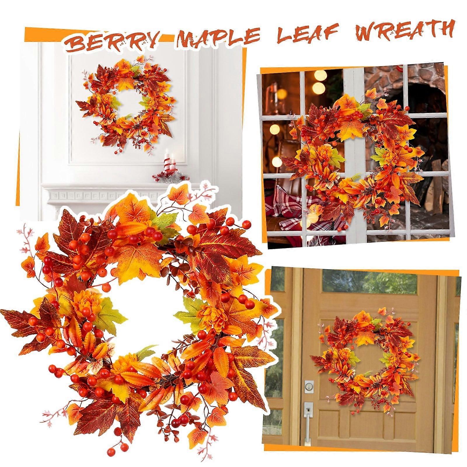 HKUKY Artificial Berry Maple Leaf Wreath 17" - Harvest Wreaths for Front Door, Fall Wreath with Pine Cones, Pumpkins, Wheat Ears, Thanksgiving Autumn