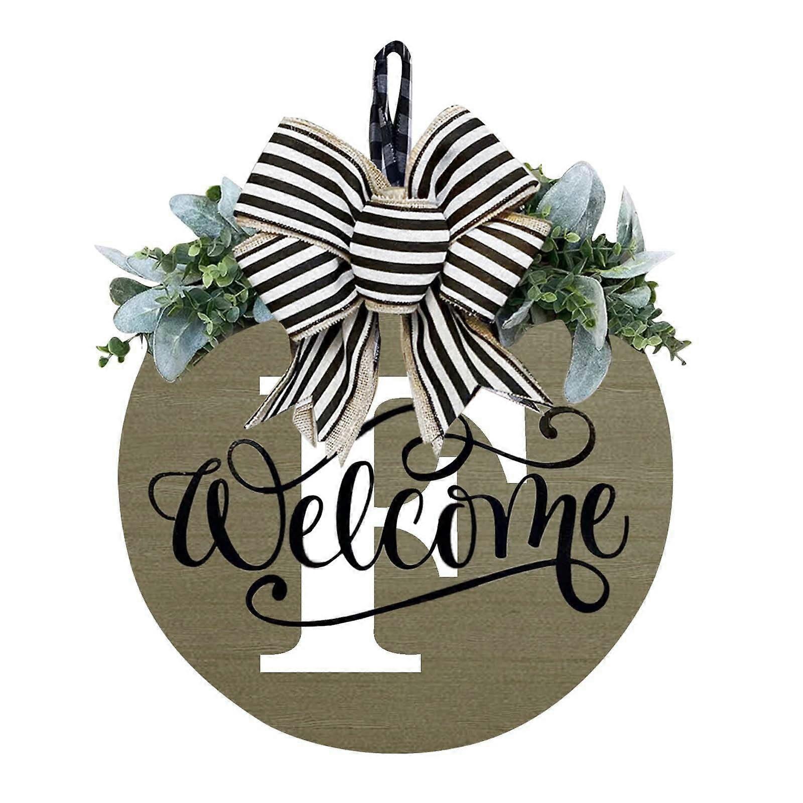 Yakbaofuo Front Door Wreath 2024, Welcome Sign Garland A-Z, Farmhouse Outdoor Wreath Hanger, All Seasons Wooden Wreath compatible with Year-Round Use