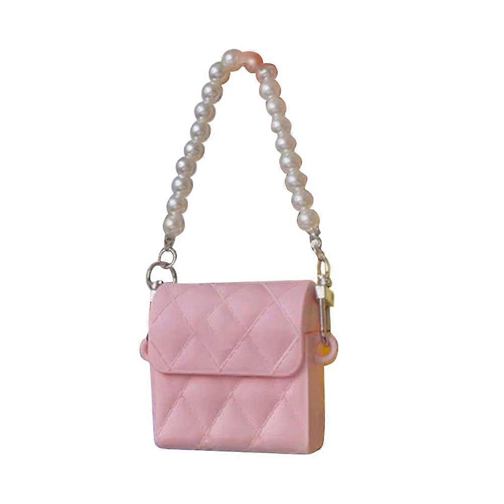 jixopn Silicone Headphone Holder Bag Shaped Soft Earphone Case with Pearl Bracelet Protective Case for compatible with Airpods 3