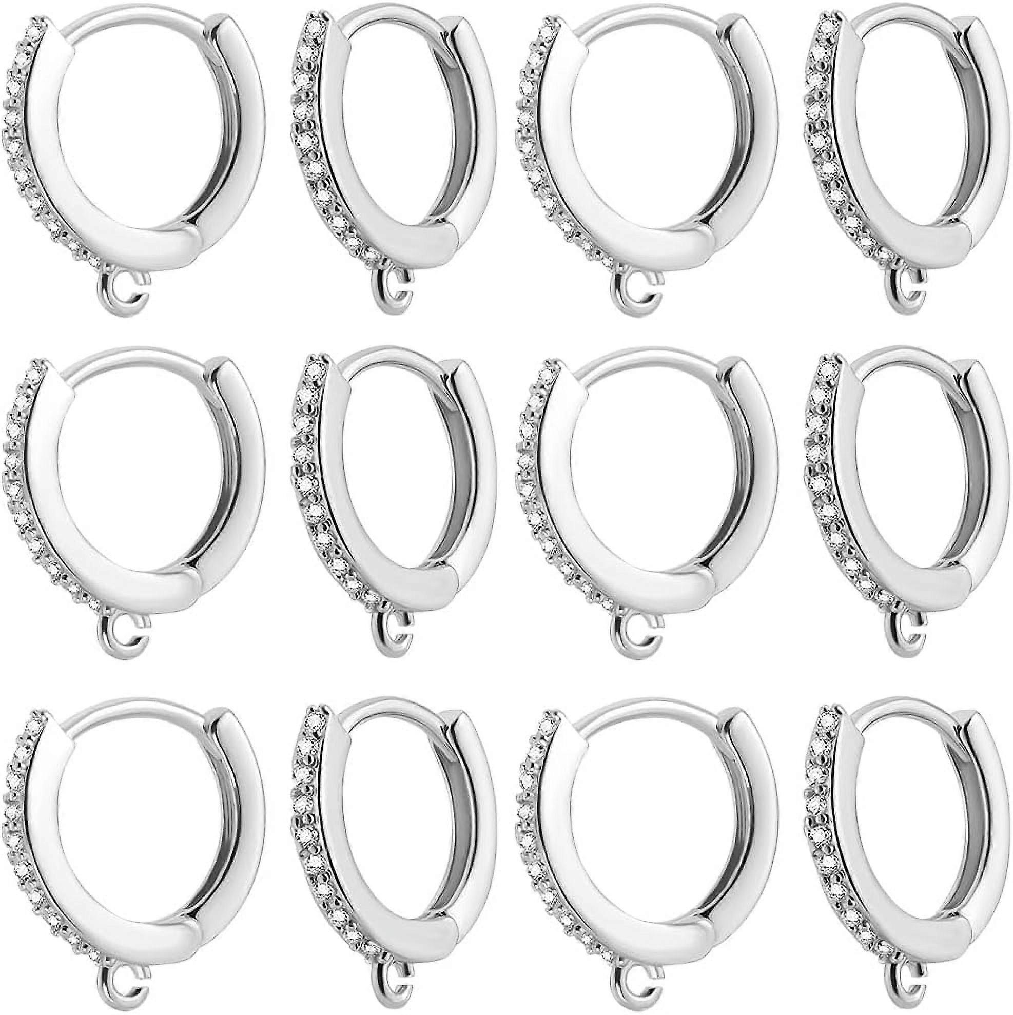 12Pcs Platinum Plated Huggie Hoop Earring Findings, Round Leverback Ear Hooks with Loop, Silver Earwires + Storage Box for DIY Earrings