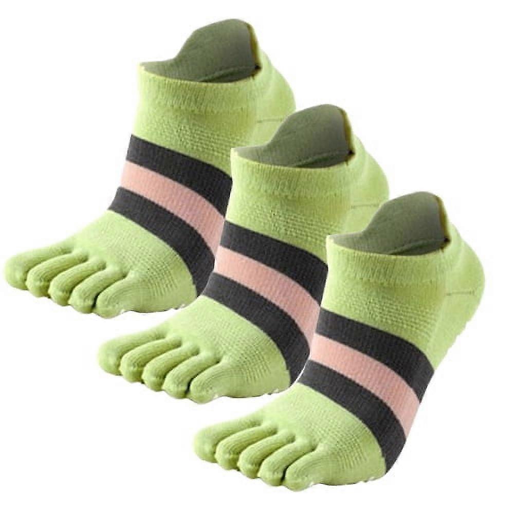 3Pairs Running Yoga Non-Slip Toe Socks For Women With Grips Low Cut Finger Crew Athletic Socks,Green