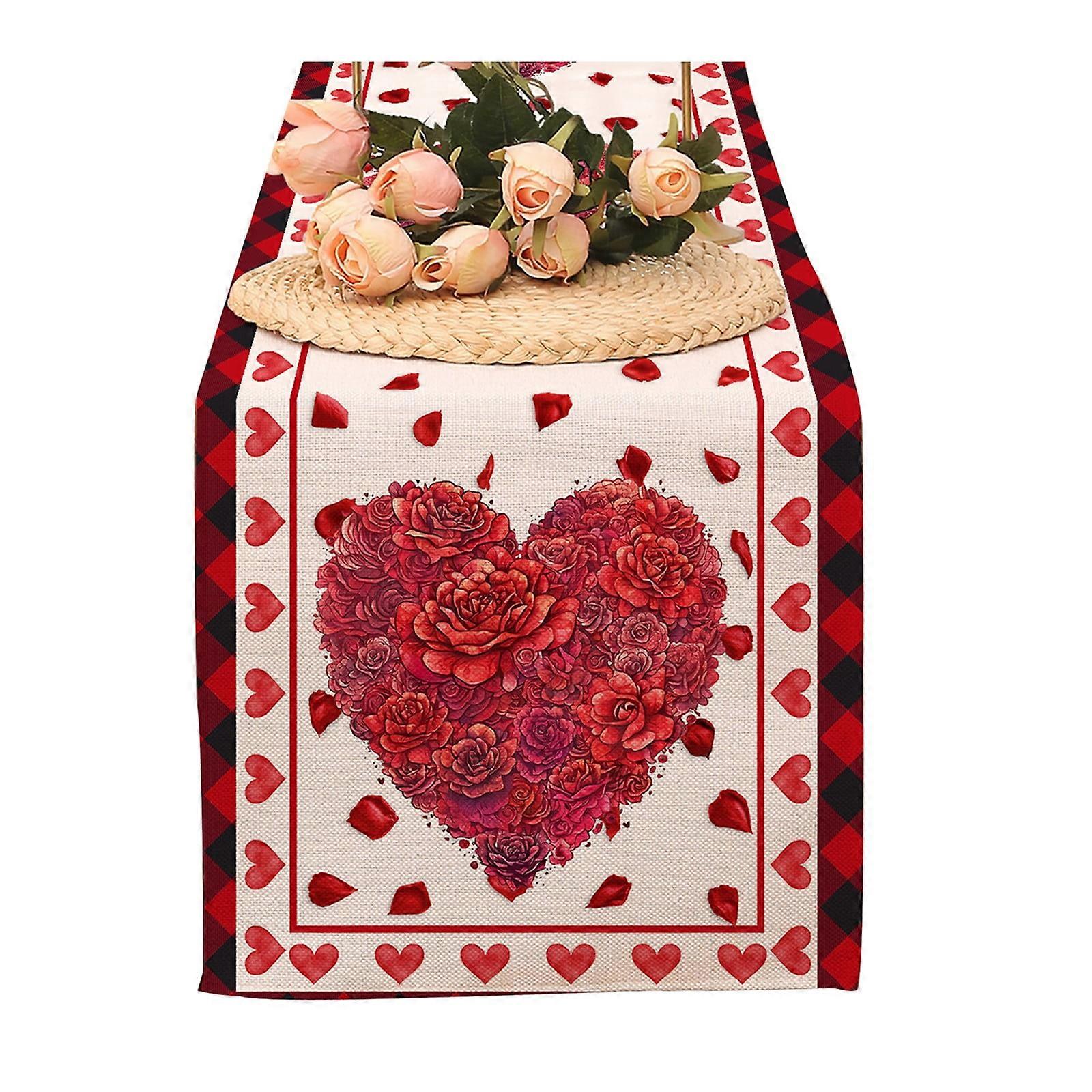 Valentine's Day Table Runner, Heart Fabric Rectangle Tablecloth for Kitchen Dining, Washable Home Party Decoration