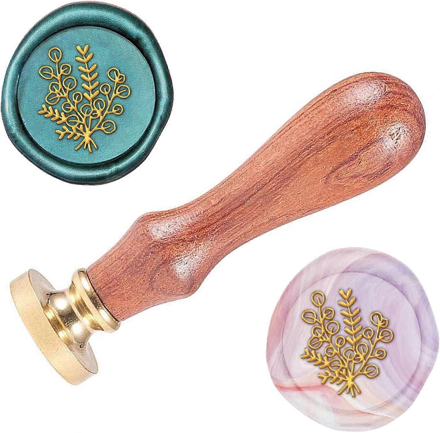 Wax Seal Stamp Set, Solid Brass Head & Wood Handle, Removable Retro Stamp Kit for Envelopes, Invitations, Gift Cards, Leaf Pattern, 83x22mm