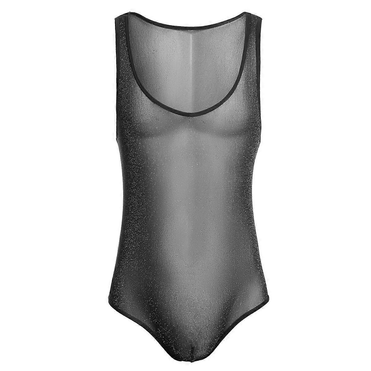 Shiny Mens Mesh Sheer Bodysuit Sleeveless Rompers One-Piece Pajamas Gay Lingerie