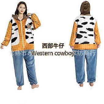Halloween Western Cowboy Flannel One-Piece Pajamas Couple Home Clothes