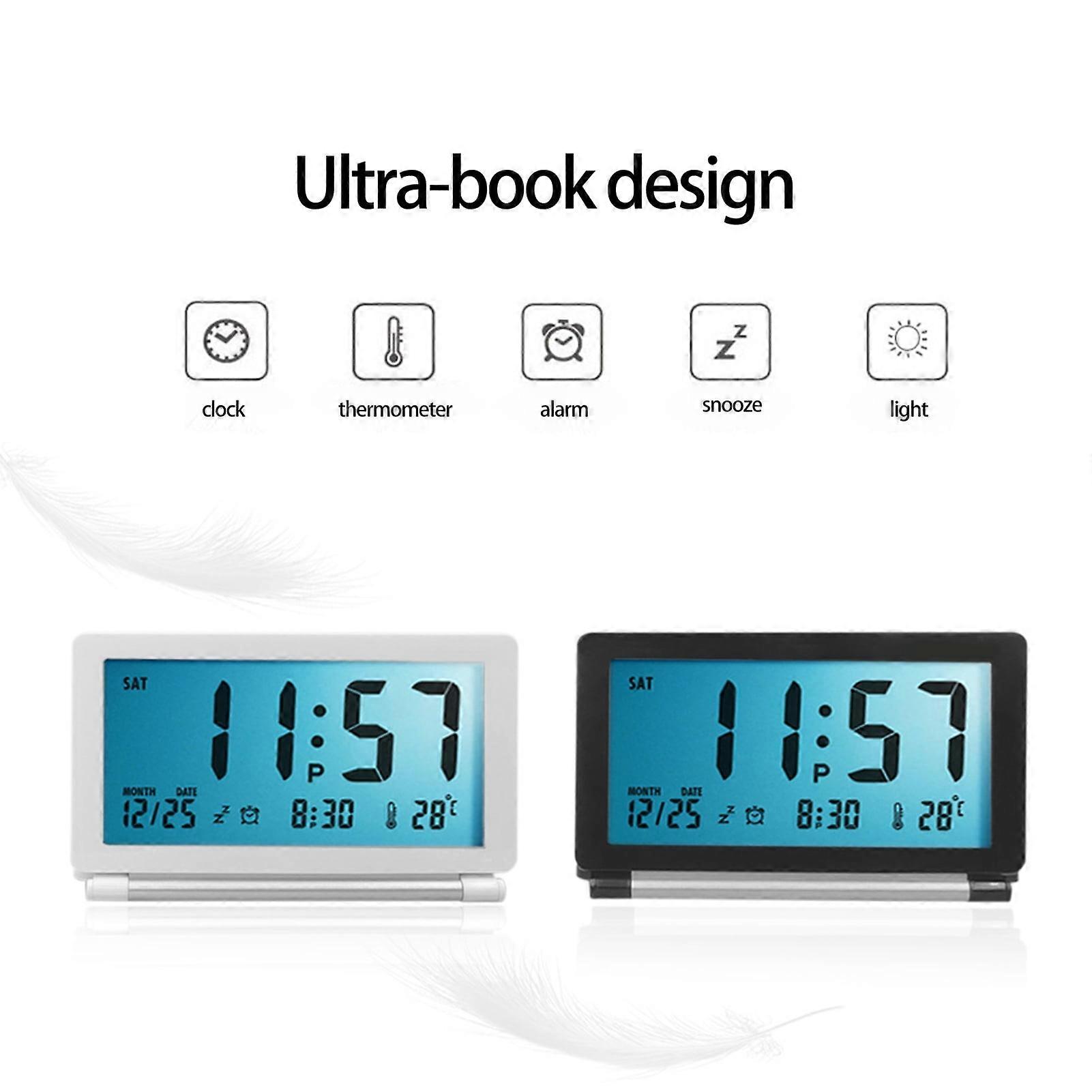 SUSUchens Digital Clock with Large Screen, Real-Time Snooze, High Precision, Collapsible, Temp Display, for Home - White