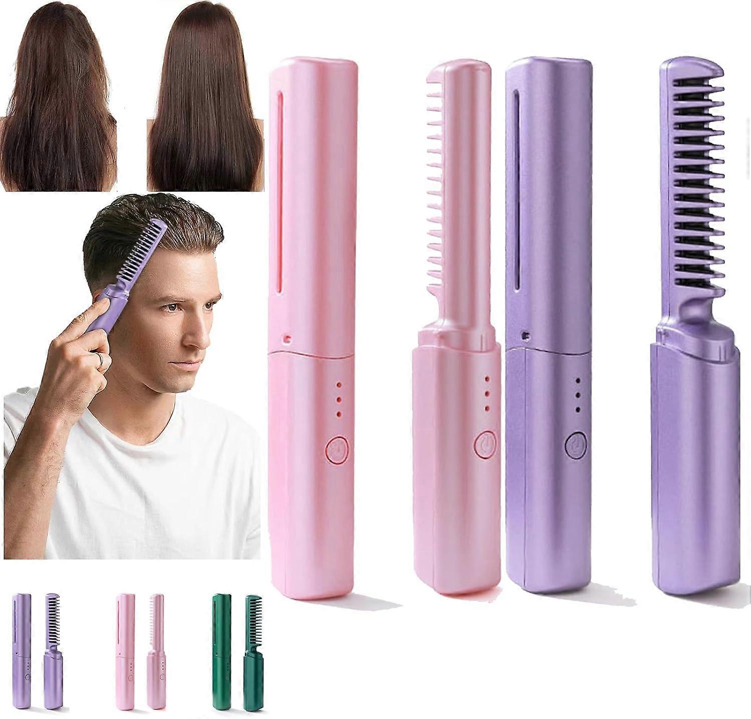 Rechargeable Mini Hair Straightener, Wireless Electric Hot Comb for Black Women, Portable Cordless Hairdressing Comb 2024