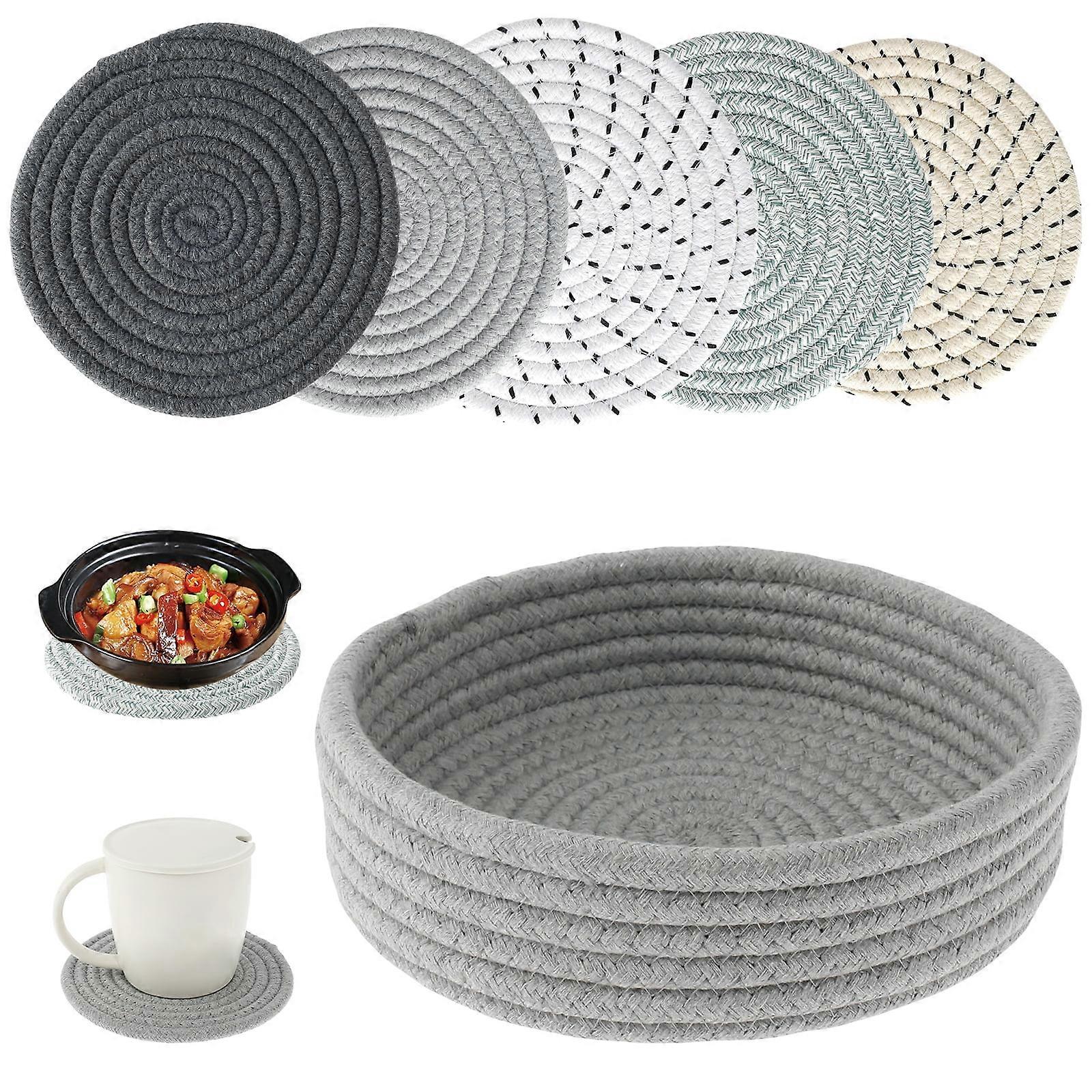 Jetcloudlive 7" Trivets for Hot Pots & Pans, Heat Resistant Coasters with Storage Basket, 5 Pcs - Compatible with Jetcloudlive