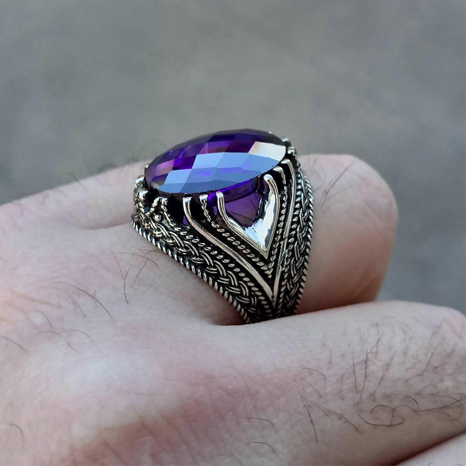 Yuehao Rings for Women, Gifts for Women, Fashion Elegant Purple Stone Jewelry Ring Jewelry Engaged Ring for Women and Men (Silver, Size 10)